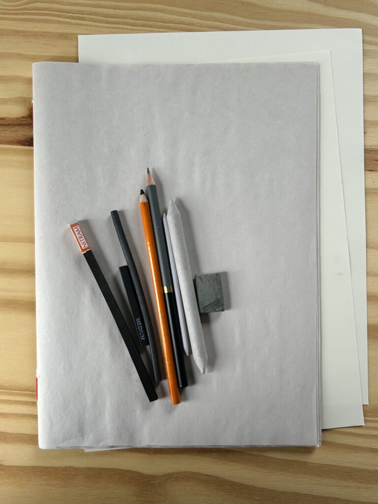 Experiment in a sketchbook and two sheets of drawing paper with vine, compressed, and charcoal pencils. Use of blending stumps, kneaded eraser, varying charcoal included.